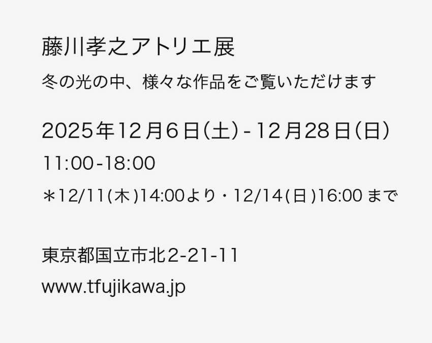 Takayuki Fujikawa Atelier Exhibition